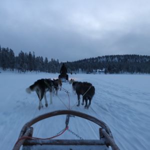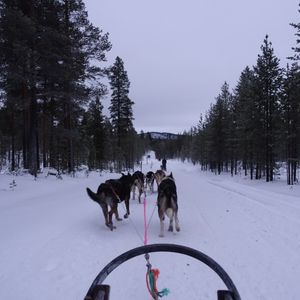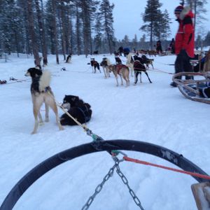 サーリセルカから、バスで移動し北へ向かい何処まで連れて行かれたのかよくわからないようなところでハスキーが沢山出迎えてくれました。みんなすごく人懐っこくてとても可愛かったです!女性2人で乗ったからか、比較的みんな小さな子達で、少し頭を撫でるとお腹を見せて撫での催促。でも走り出すととっても早く、ブレーキをかけるとみんなちゃんと止まったりとても賢い子達でした!ホントに楽しかったです!強いて問題をあげるなら、手足の指がちぎれるかと思うほど寒いくらいです・・・。またフィンランドに来れるなら是非申し込みたいです!