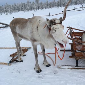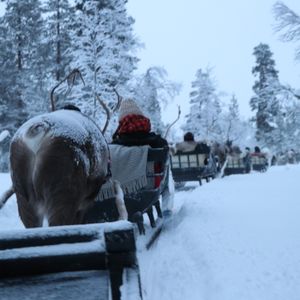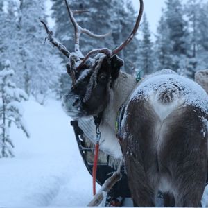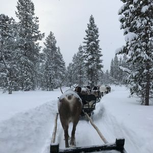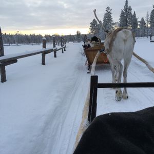 そり体験はなかなか時間が長く、雪が降っていたせいもあってか非常に寒かったです。それでも、トナカイがひくそりの音と景色の美しさ、トナカイのお尻が可愛くて、とても楽しかったです。
