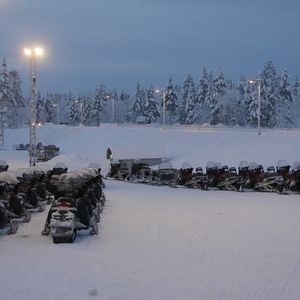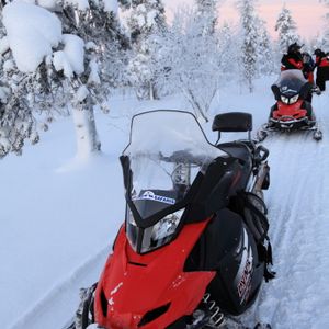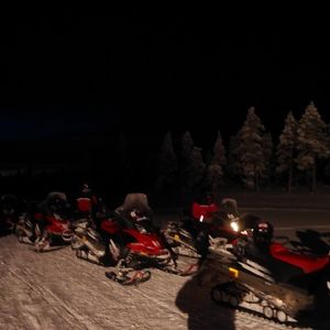 出発前のレクチャーで、追越禁止、車間距離を一定に保って故意に加減速をしないこと、万一事故を起こすと、保険には入っているものの、自己負担分がかかることなどの説明を受け、20台位で隊列組んで、ほぼスノーモービル専用道を走るツアーでした。
