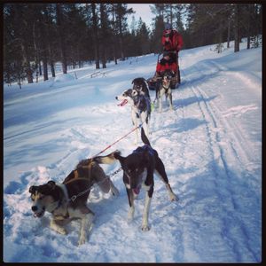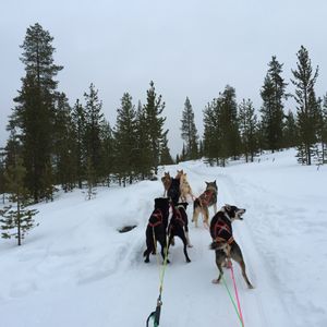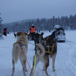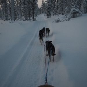 生まれてはじめての犬ぞり体験。フィンランドの冬を肌で感じることのできる貴重な体験。防寒着も貸していただけ、ツアー中寒さを感じる事はあまりありませんでした。五頭のハスキーのミックス達にそれぞれの個性にあった役割があるようです。先頭を走る二頭は元気のいい犬たちで、真ん中の一頭は前後の調整役、一番後ろの二頭は穏やかな性格で、時々後ろを振り返り、私達の事を気にしてくれているようにも感じました。予約した時は、少し価格として高く感じましたが、ツアー終了後は納得です。夏場の犬たちのトレーニングやコースの整備など考えれば納得です。ツアー終了後の犬たちはとても愛おしく感じられました。