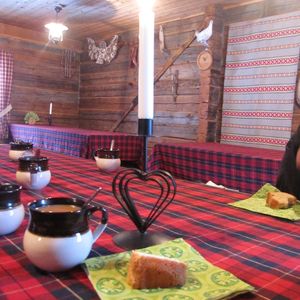 その後は、コテージで温かい飲み物と出来たてのお菓子をいただきながら、トナカイやサーリセルカの文化などについてのお話を聞きました。日本語だったので、良かったです。