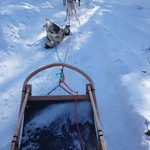 犬たちがとてもモチベーションが高く、高速でそりを引っ張って下さいました。走る際にハスキーの息がまるで車のモーターのよう、とてもタフな生き物だなーと感心しました。コース終了後に犬たちにご苦労様と感謝しました。機会があれば、また、参加します。