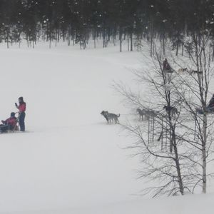 いよいよスタートだか、はじめからトップスピードのロケットスタート。木と木の間の林間道を犬がぬうように走り抜けるのはスリル満点。途中休憩をとりつつ、真ん中辺りで、操縦者と乗車者と交代。一人の自分はひたすら操縦。今度は平原を全速力で駆け抜け、爽快感抜群。途中スタッフによる写真撮影のサービス後一時間程度で終了。