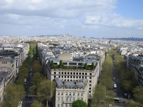 凱旋門自体が少し高いところにあり、特に12本の放射状道路が伸びていることがよく分かり、また有名なランドマークも良く見えるので、パリを概観するのにとても適した場所です。