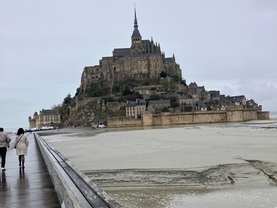モン・サン=ミッシェルを実際に訪れてまず感じたのは、「本当にこんな場所が現実にあるんだ」という不思議な感覚だった。遠くから見ると海の上にぽつんと浮かんでいるように見えて、まるで映画や物語の世界に入り込んだような気分になる。近づくにつれてその存在感はどんどん大きくなり、ただの観光地ではなく、長い歴史を背負った特別な場所だと実感した。