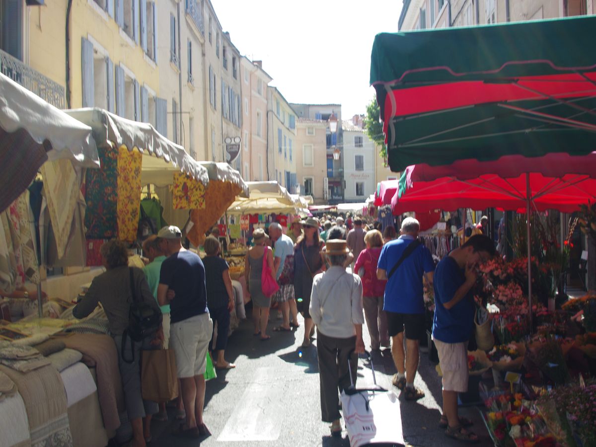 アヴィニョンを離れて少ししてリル・シュル・ラ・ソルグで一時停車。この日はたまたま土曜日だったので、週末マルシェが開催されていて、たくさんの出店が出ていました。