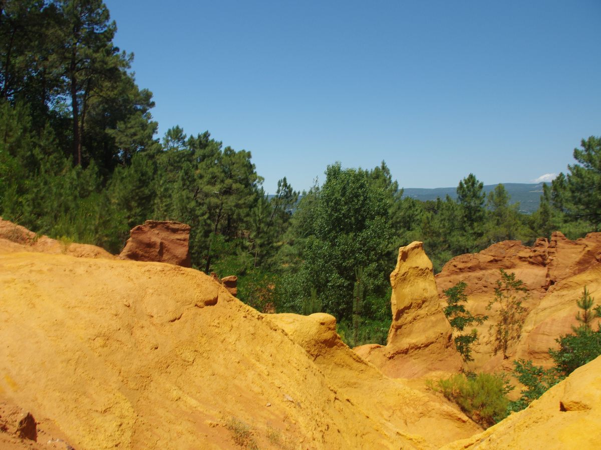 ここの黄土(オークル)がいわゆる絵の具の黄土色の元祖で、18世紀の終わり、村人がこの黄土(オークル)を精製して絵の具の原料、顔料にすることを思いついた。やがてあちこちで真似をするものが現れ、ルシヨンはすっかり顔料の村となり、黄土色の絵の具は広く世界に普及した。