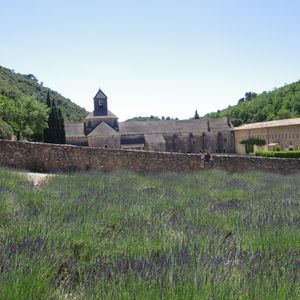 その後横の道を入り、坂を下りて訪ねたのはセナンク修道院。修道院のラベンダー畑の中に、12世紀創建当時のロマネスク様式の修道院が建っています。残念なことにラベンダー畑はシーズンを外してしまい、花の大半は終わってしまっていました。