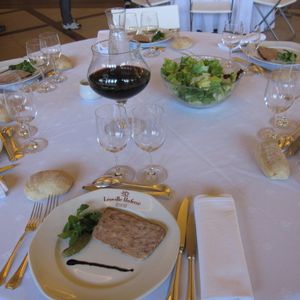 最初ちょっと高いなと思ったこのツアーですが、個人で車をチャーターするともっとお金がかかるし、メドック地区の高級ワインを3つのシャトーで試飲できるということで申し込みました。訪れたのはメドック地区格付け第5級のシャトー・ランシュ・ムーサス、第2級のシャトー・レオヴィル・ポワフュレ、第4級シャトー・ラフォン・ロッシェでしたが、毎回この組み合わせなのかどうかはわかりません。3つのシャトーでそれぞれ造醸所の見学があり説明がありますが、フランス語と英語のみなのでよくわからないし、3か所で毎回同じような説明を聞くことになるのでちょっと退屈でした。試飲の方は各シャトーで3種類位試飲しました。昼食はシャトー・レオヴィル・ポワフュレのレストラン。フルコースでボリュームもあり美味しかったです。2級シャトーのレストランで食事しながら数種類のワインが飲めるだけでもツアーの値段相応の価値はあると思います。訪問したシャトーの他にも車窓からメドック地区の有名シャトーをたくさんみることができました。シャトー・マルゴーでは写真撮影の為、バスを停めてくれるサービスもありました。