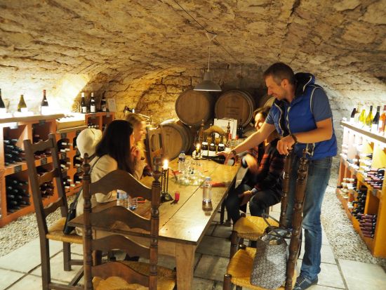 車で移動後、とあるカーブを訪問し、 7種類のワインを試飲。チーズやチョコレート等と一緒に豊富な種類のワインを堪能。お気に入りのワインが見つかれば