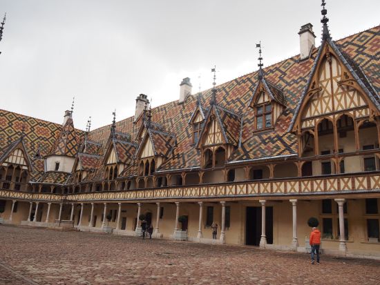 ボーヌでは2時間のフリータイム。デジュネをパスしてホテル・デュー(神の館)を見学。1443年、ブルゴーニュ公の大法官だったニコラ・ロランと妻によって、貧しい人々のために病院として建てられた。病院の運営は、病院が所有する葡萄畑からできるワインの競売でまかなわれてきたそう。ヴァイデン作『最後の審判』をもう少しじっくり鑑賞したかった(限られた時間だった)。