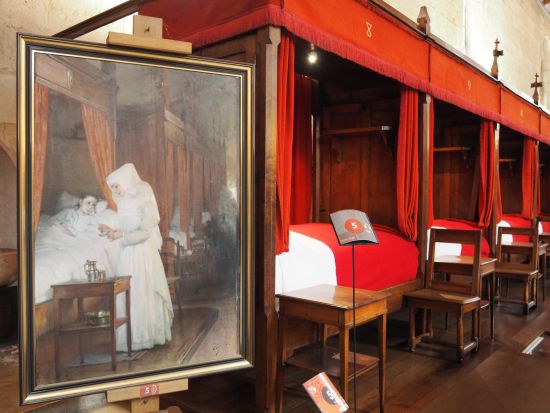 そのままグランクリュ街道を南下、コート・ド・ボーヌに入って、ボーヌ市内でランチタイムを兼ねた自由時間2時間。オテル・デューは別に入場料を払う必要がありますが、日本語の音声案内もありとても見応えがありました。オスピス・ド・ボーヌを購入することもできます。