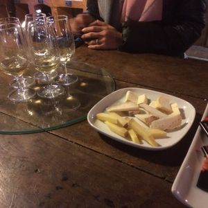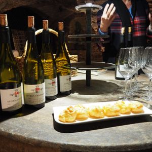午前午後と二度試飲会がありました。地下のワイン貯蔵庫の中での試飲は雰囲気もとてもよかったです。どちらも、5種類のワインを試飲しました。個性的で美味しいワインばかりでしたが、高いものは1本200ユーロを超えるワインの試飲もあり、お得感満載でした!チョコやチーズ、パンなどワインに合うおつまみも準備されていました。