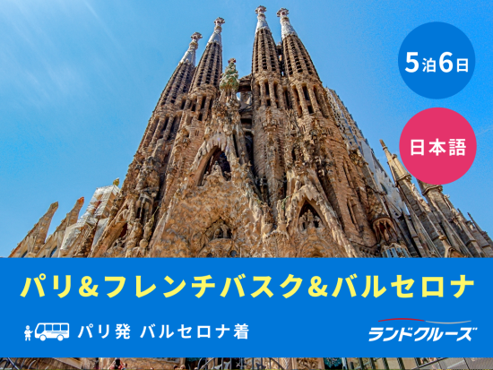 パリ発バルセロナ着 フレンチバスク・バイヨンヌ+パンプローナ+バルセロナ周遊 モンセラット観光とサグラダ・ファミリア入場付<5泊6日/火曜/1名催行/日本語>