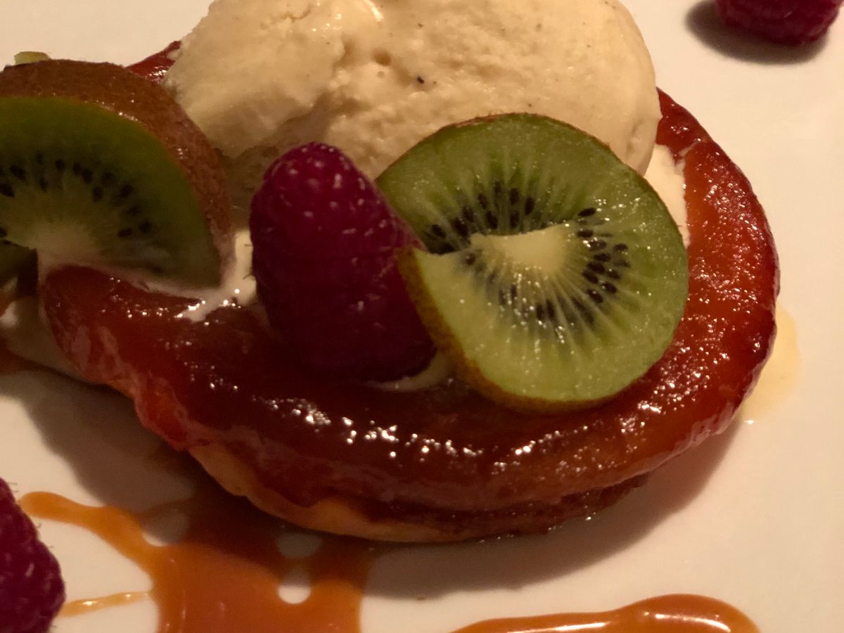 お料理はちょっとひねりすぎ?なものもあり味付けは悪くはないが特筆すべき料理でもないと言ったところ。半生のサーモンや生の帆立貝などはまあまあで・・・フォアグラのテリーヌは美味しかったです。メインの小鴨、子牛、帆立貝のローストも美味しいですが「美味い!」というほどではありませんでした。デザートのショコラムースと洋梨のキャラメルソースは美味しかったです。ミルフィーユは薄く焼いてキャラメリゼしてあるからフランスで食べるミルフィーユにしてはひねりすぎでした。バニラは効いていました。