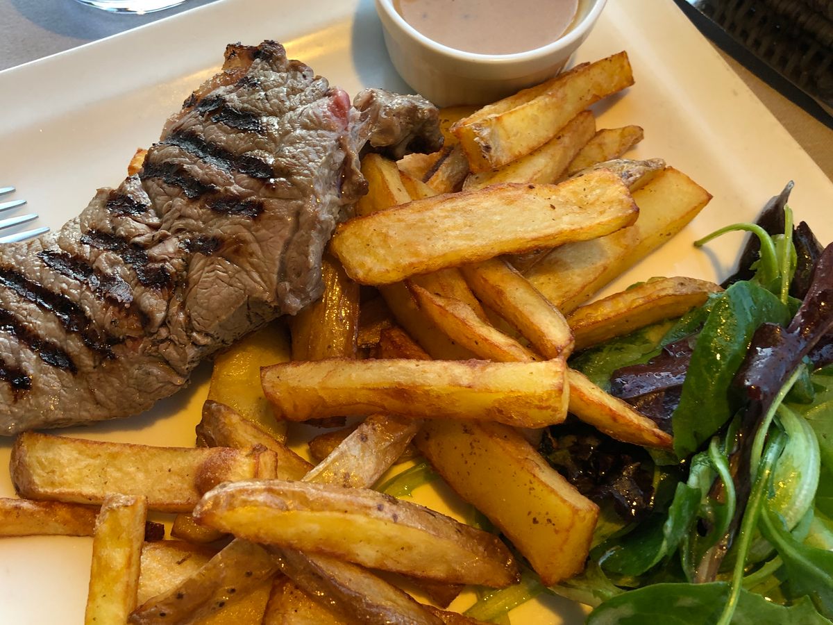午前中にベルサイユ宮殿、午後からトリアノンの観光ツアーに参加しており、8/15で観光客が多いのは覚悟していましたが、店内は落ち着いておりゆっくりと食事をしながら休憩時間を過ごせました。午後のツアーの集合場所も目の前でしたし、建物の3階にあるトイレは穴場で待ち時間なく利用できるきれいなトイレでした。あと、選べるデザートにミルフィーユがあったのが個人的に嬉しかったです。美味しくいただきました。