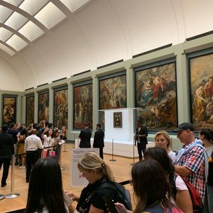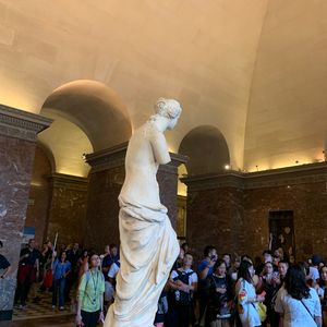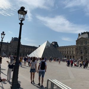 実はルーブル美術館に行くのは4回目でした。最後に行ったのが数年前で、ほぼ同じ夏の時期でしたが、その時とは比べ物にならない程の観光客数で驚きましたが、入場までの待ち時間もほとんどありませんでした。、毎回何となく、1日うろうろして疲れてしまったのですが、今回は時間が余りなかったため、ガイドツアーに参加致しましたが、目玉の作品の説明、絵の見方などガイドして頂きながら、効率よく回れて大変良かったです。強いて言うと、イヤホンの形が少々使いづらく、聞こえにくいことが多々あり残念でした。(自分の聞こえが悪くなったのか?と思いましたが同様にイヤホンを抑えながら聞いている女性が数名いらっしゃいました。