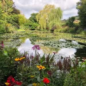 6月、花の一番きれいな時期に、行って来ました。庭の色んな種類の花々、日本庭園のスイレン、写真や絵で見かけるそのままの景色、モネがかつて暮らした家の中の壁にかかる、「日傘をさす女」、青と黄色のキッチン、銅の鍋ややかん、自分の目を通しての体験は感動と感激です。花の時期は終わっても、今度はルーブル美術館でモネに会いに、11月に再訪します。