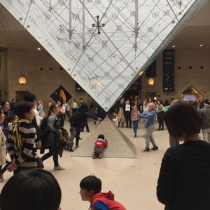 子供二人、妻と4人で参加しました。マイバスパリさんに集合しました。大きなリュックサックはあづけることができて助かりました。18時には閉店するのでその前には取りに戻る必要があります。地下にトイレがあり事前に済ますことができたのも、子供連れにはありがたかったです。マイバスパリさんから歩いて10分足らずでルーブル美術館に到着します。