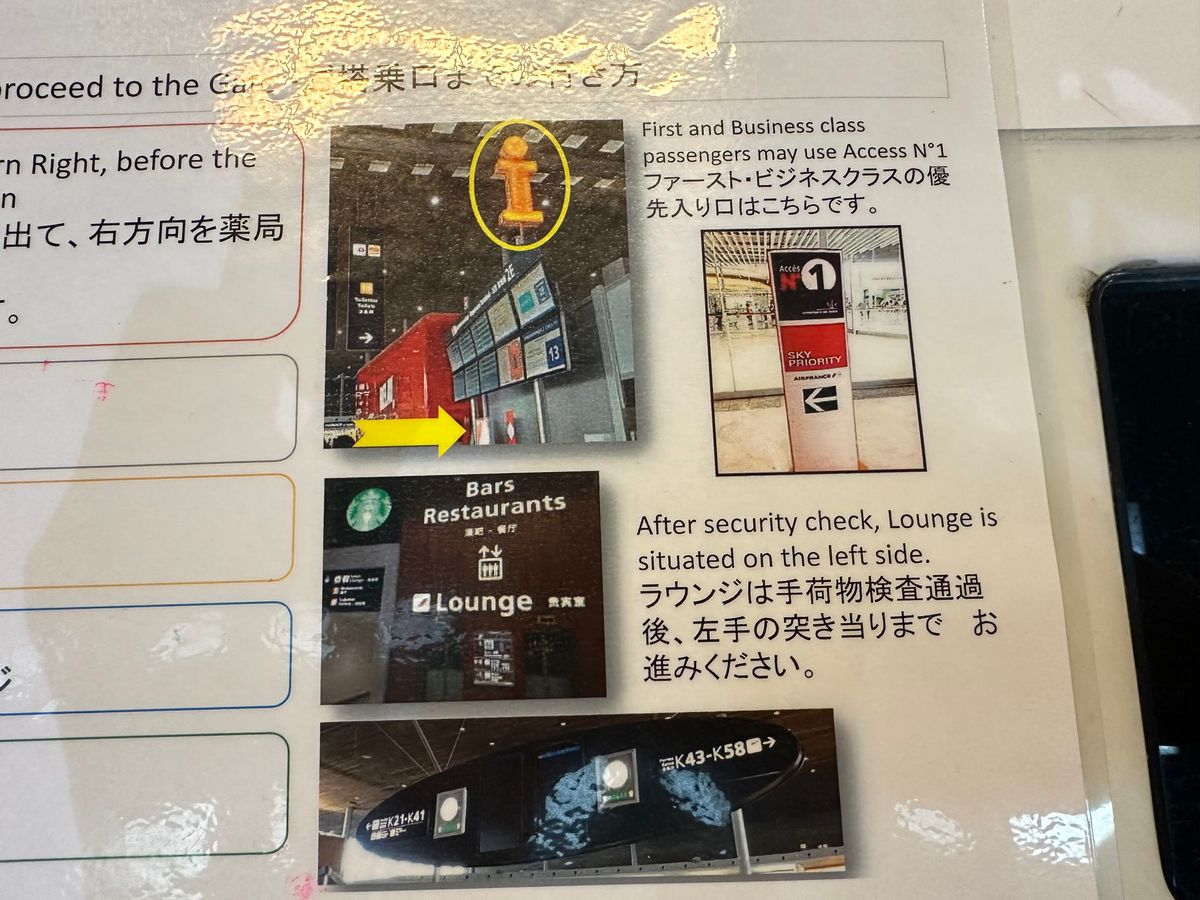 予約票では、パリ空港でiPadに名前を書いてお待ちしています、との事