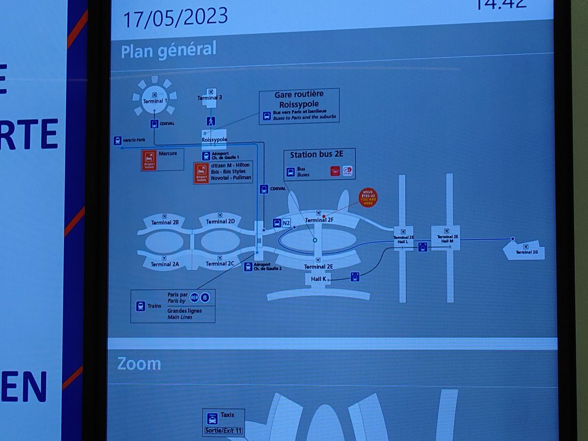 1時間以上も時間がかかり、シャルルドゴール空港には1時間半以上も遅れての