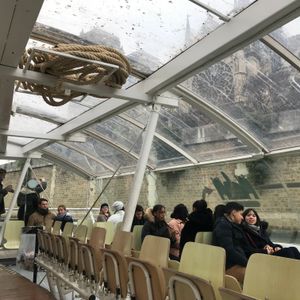 12月31日に参加しました。写真の通り、どんよりとした冬のパリですが船はガラス張りなので温かく快適でした。どの席に座ってもパノラマの景色が楽しめます。エッフェル塔の乗り場から乗船して1周してみました。乗り降りは自由なので好きな場所で降りてそこから観光が出来ます。ただ、船は待ってくれないので少し遅れると次の船を待たなければならないのでお気をつけて!パリはメトロで移動できますがセーヌ川からの景色はまた違った趣きがあるのでお勧めです。