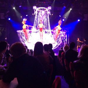 土曜のせいか、とにかく入場までえらく並びました。食事中もバンド演奏があり、フロアで皆さんダンスを楽しんだりしてました。入場まで時間を要したせいで、食事を終えるとちょうどショーの時間になり、時間を持て余すことはありませんでした。ショーはとにかく綺麗でびっくり。トップレスの女性がたくさん出演していますが、いやらしさは全くありません。綺麗すぎてマネキンが踊っているようでした。ただ綺麗すぎてすぐにあきてきてしまいちょっとショーの時間が長すぎると感じました。テーブルが狭くギチギチで食事することも考えると食事は別で、ショーのみにした方が楽しめたかもしれないと思いました。お泊りの場所にもよりますが23:00終了後女性1人でしたが、地下鉄で全く問題ありませんでした。むしろ東京より人出も多く怖さもありませんでした。