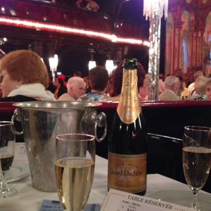 早めの到着を!と21時からのシャンパンショーに20時過ぎに行きました。並ばずに係りに声を掛けると待たずにすぐ案内され、既に席はほぼ一杯でした。とにかく早めに行くことをお勧めします。手提げ袋をクロークに預けましたが無料でした。席は正面中ほどの6人掛け、身動き取れない程の非常に狭い席でしたがほとんどがそのような席でした。舞台に近いよりも、後方の段差が高くなってる席の方が見やすそうでしたがディナーショー用の席だったかも。ゆったりみたければディナーショーの方が良いかもしれません。相席だったのでオーストラリアの中年女性二人とフランスの老夫婦とも仲良くなれました。シャンパンの銘柄は選べずバウチャー記載のものとも異なりました。ボトルは大きめで飲みきれず。ショーは非常にプロであるというのを印象付けるものでした。妻もとても感動していました。パリに来たら、是非オススメです。