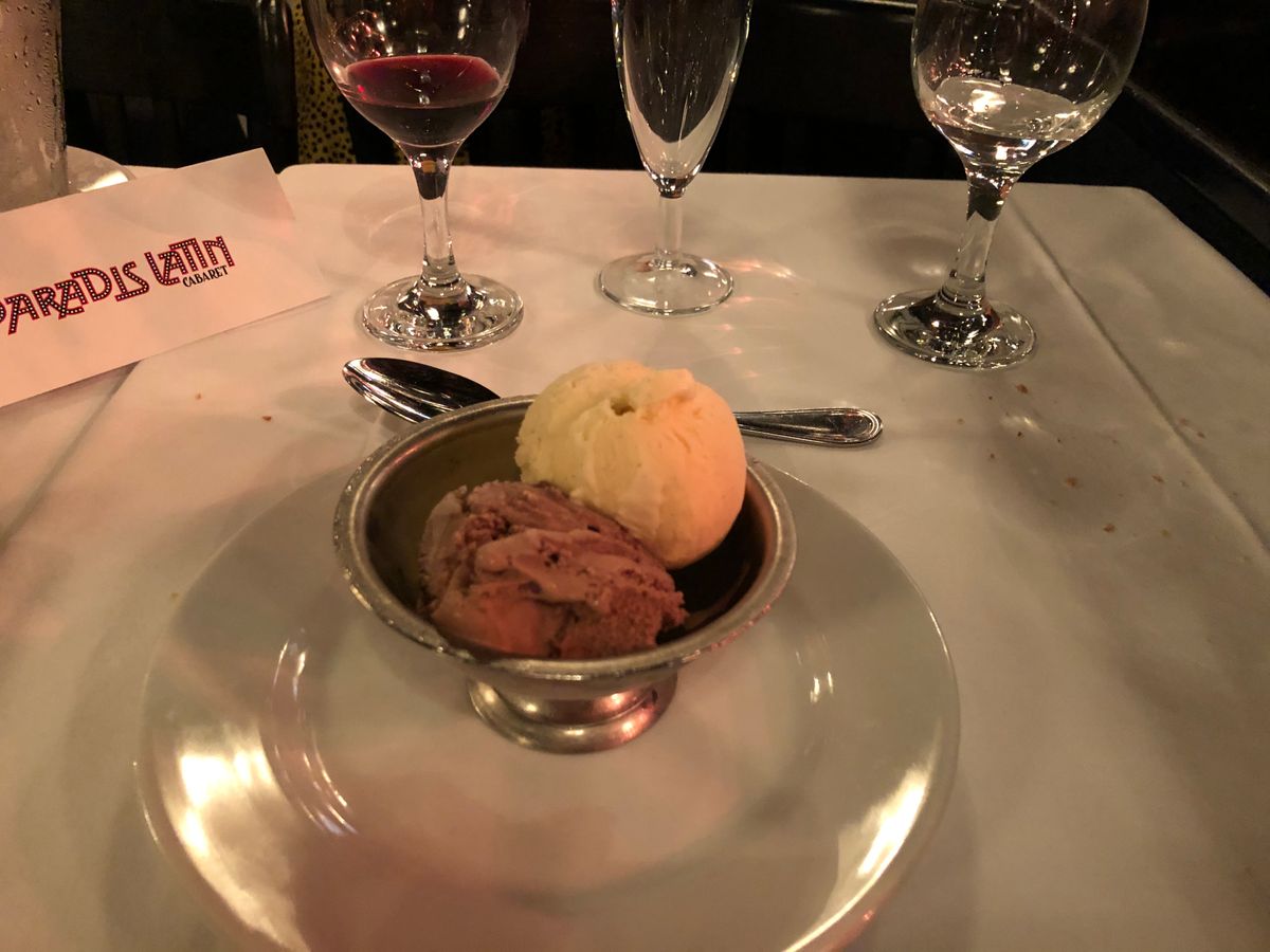 セーヌ川沿いで夜の散歩を楽しみつつ到着。メニューはフランス語のみでカメラ翻訳を使用。日本人にも合うわかりやすい味で美味。歌の隙をぬって食事を楽しむ。料理、演出とも満足でオススメです。