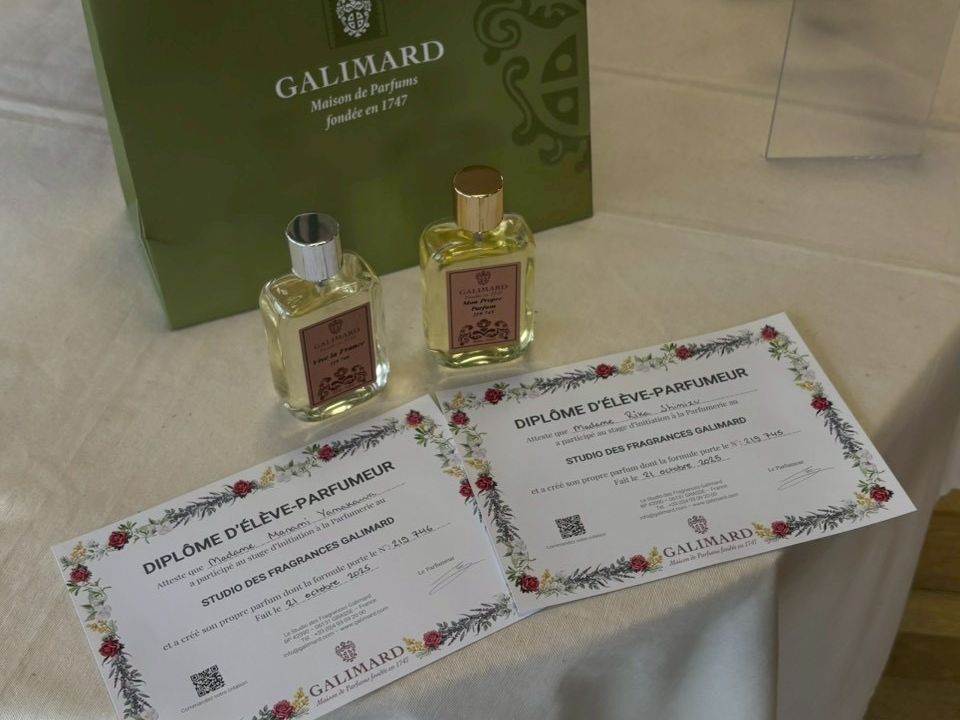 オフラインラブを見て、グラースで香水作りをしました。オフラインラブに出ていた日本人調香師さんはいませんでしたが、現地の調香師さんで日本語を話せる方がいました。最初は全て英語で説明だと覚悟して行きましたが、担当してくれた調香師さんが日本語ペラペラで安心感がありました。数え切れないほどの香水があり、自分で気に入った匂いを選んで調香師さんが一つずつ量を考えてくださいます。そのおかげで完全自分オリジナルの最高な香水に仕上がりました。グラース駅からバスが出ていると思いますが、天気が良かったのでグラース駅から25分ぐらい歩き街並みを楽しみました。香水が仕上がった後は証明書がもらえます。記録されているので一生残るものになります。また、ショップもあって石鹸なども購入しました。一生に残る思い出となりました。本当にありがとうございます。また、行きたいです。