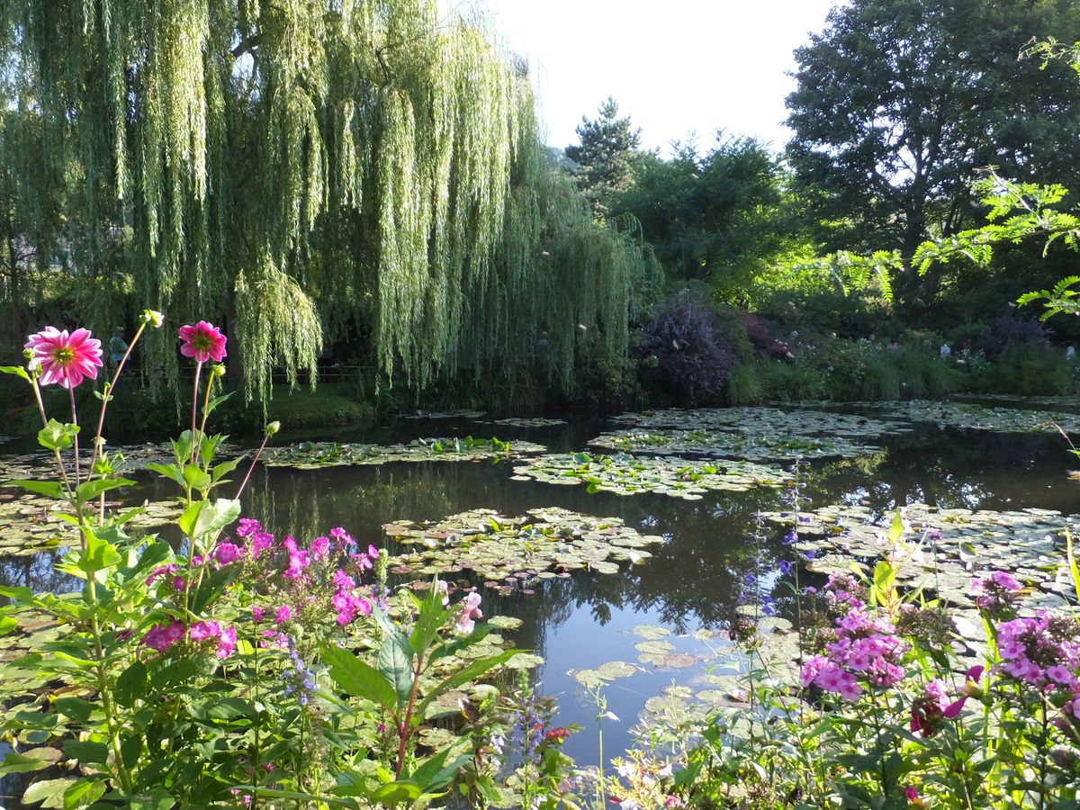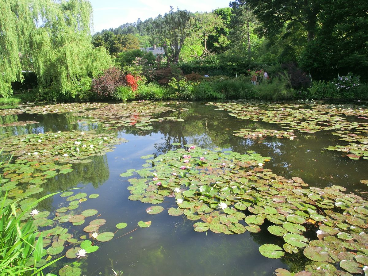 早朝出発のジルベニーツアーに参加しました。行くバスの中で、モネの生い立ちや作品について説明して頂いたので、現地で何の情報もないまま見学とるのとは違いました。事前に情報が頂けるはありがたいです。自由見学は90分、バス駐車場から庭園迄徒歩片道10分ぐいなので、実際の見学は70分程度です。ゆつくり見学したりギフトショップでじっくり買い物するのは時間が足りません。(興味がない方にはさっと見学するには丁度でしょうか)公共機関の乗り継ぎで行くには不便な場所なのでツアーが価格的にもおすすめです。あと30分自由時間が欲しい処でした。8月はじめの参加でしたが、蓮の花は終わっていました。