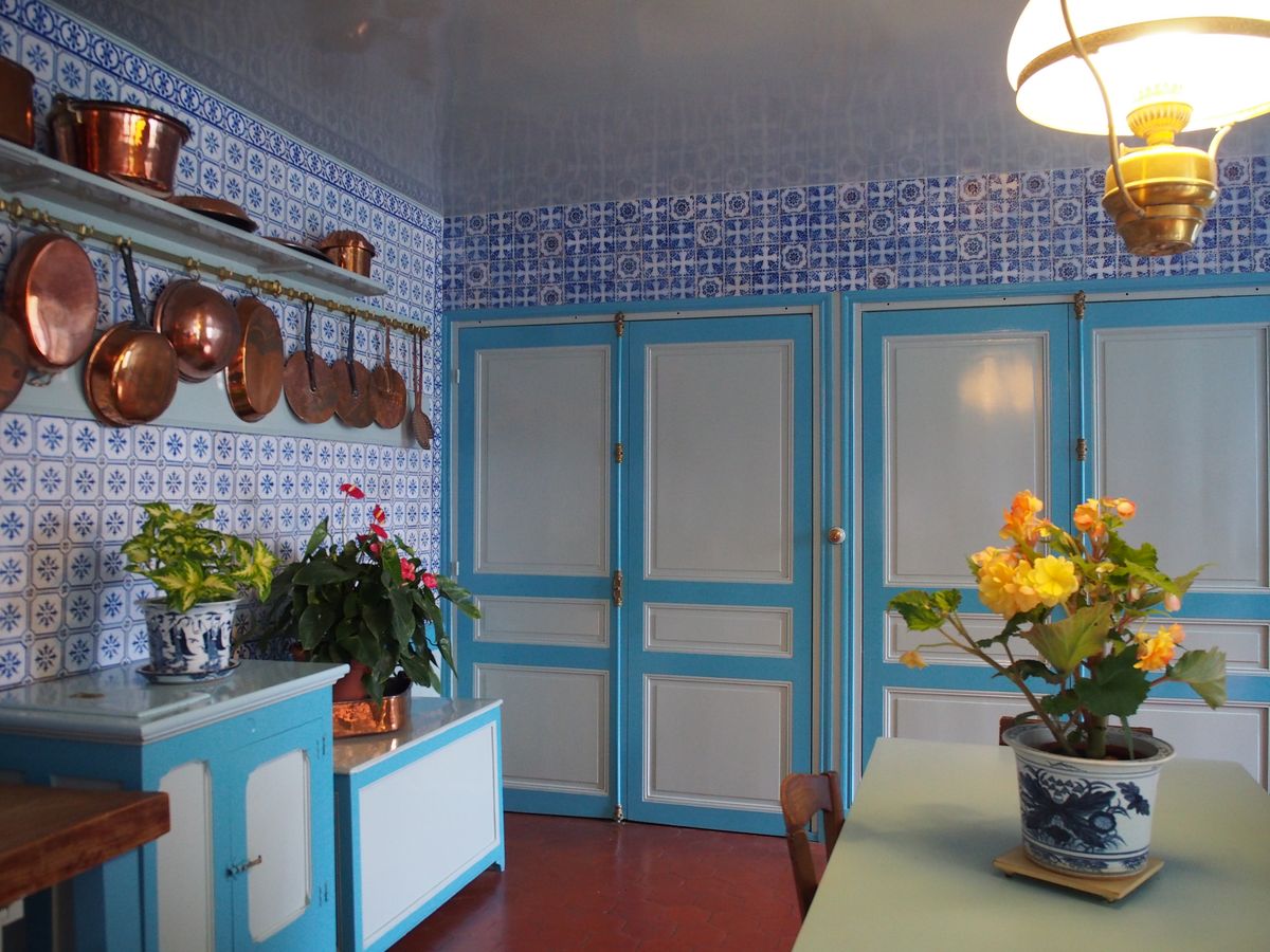 モネの家も住んでたころと変わらない寝室、キッチン特にキッチンは白とブルーの柄タイルは良かったね。2階から見る庭も絶景です。色々な花ばなが咲き乱れきれいでした。モネのこだわりを感じました。