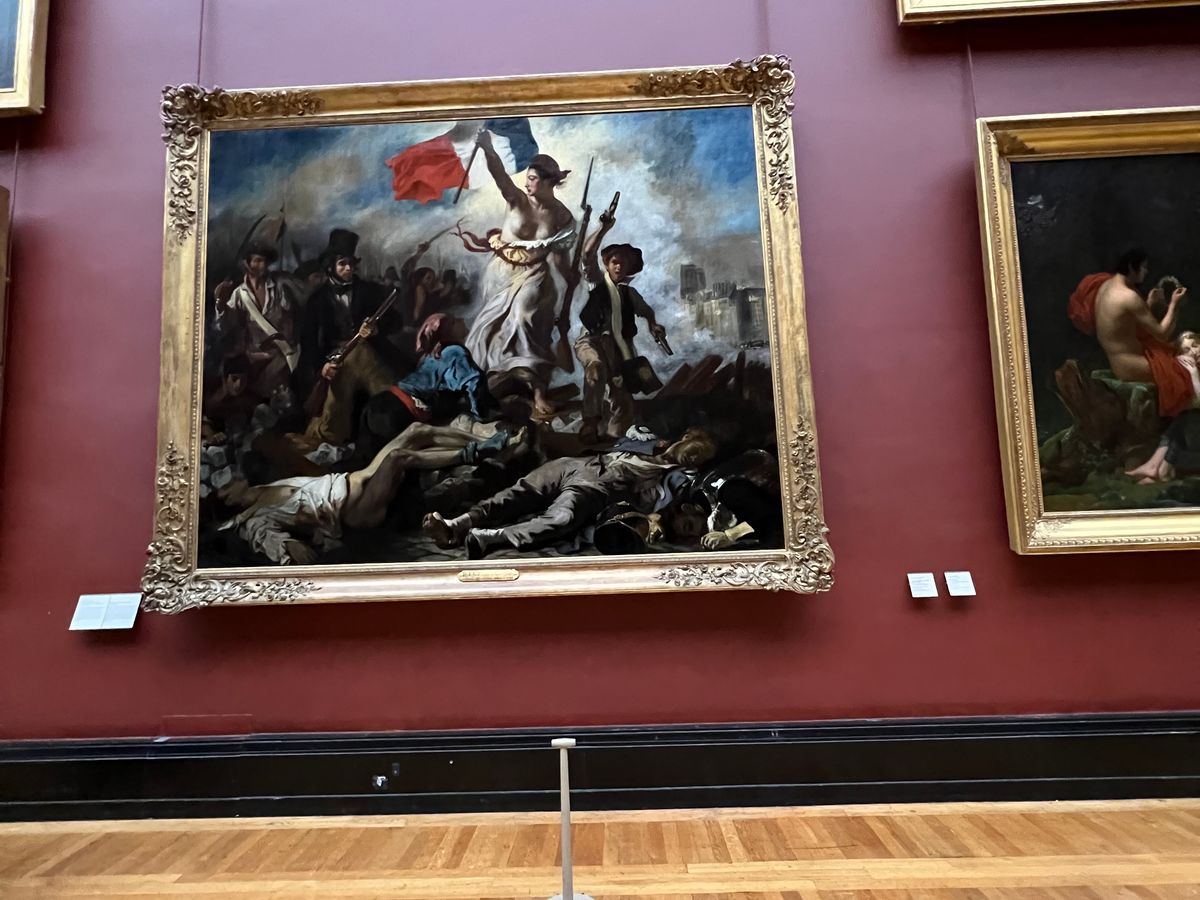 政府公認ガイドさんに ホテルまで迎えに来ていただきました。パリは初めてなので1人参加でのプライベートガイドをお願いしました。旅行前にLINEで事前に回りたいルーブル美術館のリストを送っていました。そしてパリ観光情報も知らせていただきました。お会いした時、まったく初めての方ではない感じで(お知り合いの方?)安心してお任せできました。地下鉄の乗り方と、回数券カード購入を教えていただき、念願のルーブル美術館に行きました。パリは3連休とのことで一般の入場口は長蛇の列でしたが、ガイドさんのおかげで、割と短時間で入場することができました。館内はどこも人がいっぱいでした。そのため、全部の展示を見て回ることは到底できないと判断、ガイドさんと相談し時間内に回れる、いずれもドゥノン翼にある「モナ・リザ」、「ミロのヴィーナス」、「サモトラケのニケ」、「民衆を導く自由の女神」、「ナポレオン1世の体験式」の有名な作品を見るルートに変更しました。予約の残り時間に、ルーブル美術館の隣のオランジェリー美術館にも行きました。