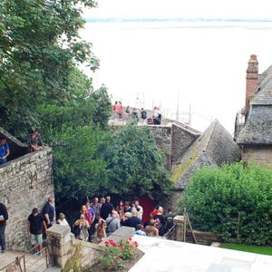 パリからの移動に時間がかかるので、日帰りだと体力を消耗しますよ~!ハイシーズンの場内は人だらけで休憩さえままなりません。レストランもカフェも常に満員を覚悟の上で行かれた方がいいかと思います。なので時間がある方はもちろん無い方もむりやり作ってでも宿泊をおすすめします。なによりモンサンミッシェルの美しい早朝、夕方、夜のライトアップは宿泊しなければ見る事が出来ませんので。日帰りツアー客が帰ってからゆっくりと観光する事をおすすめします。