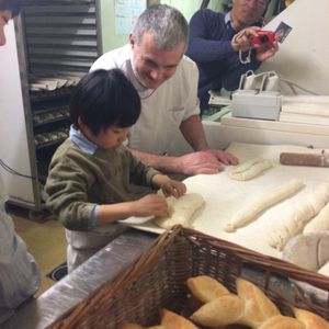 夫婦2人で参加。他にアメリカ人3名の計5名のグループでした。バゲットやクロワッサンの作り方をパン職人さんが楽しく説明してくれ、途中、参加者にいろいろな作業をさせてくれます。パン職人さんの説明は、結構”本気”でしたが、日本語通訳さんが、恐ろしく丁寧に「同時通訳(すごい!)」してくれたため、パン作りなんて全くの初めてのわたしでも楽しく体験ができました。きっと小学生の子どもでも楽しめると思いました。