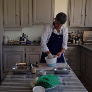 堅苦しいフランス料理教室かと思いきや、場所も先生の自宅で窓から見える中庭を楽しみながらお料理できました。当方、英語は中学生レベルですが、お料理をしながらの会話ですし、先生も優しく接してくださったので不自由はしませんでした。