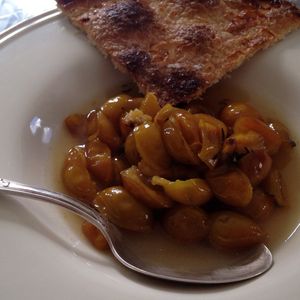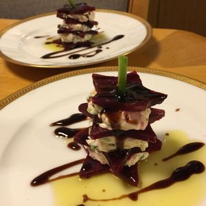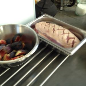 メニューは、ズッキーニの冷製前菜、ガチョウのロースト、プラムの焼きケーキでした。