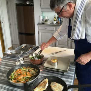 参加した日は合計7人で開催。フランス人シェフのDominiqueさんは気が長く、ゆっくりペースでフライス料理の基本を説明しながらみんなで調理していました。そのおかげで、アメリカ人の家族連れの参加者などと、食後のおしゃべりの時間もあって、美味しくて3品料理のほか、素敵な思い出ができることを大変感謝しております。