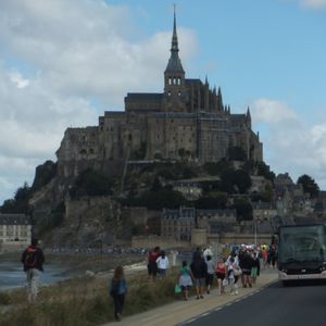 家族3人で参加しました。朝6時出発、大型バスがほぼ満席でした。片道3時間30分、一度TGVでレンヌ経由して個人で行ったことがありますが、同じくらいかかりました。モンサンミシェルは素晴らしい景観です。なおガイドさんのノルマンディーの歴史、地理の説明は興味深く、また帰りのパリ旅行のアドバイスはとても役に立ちました。