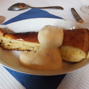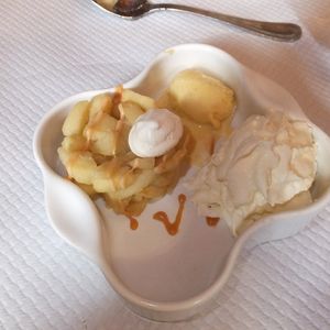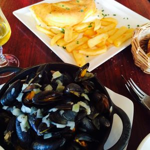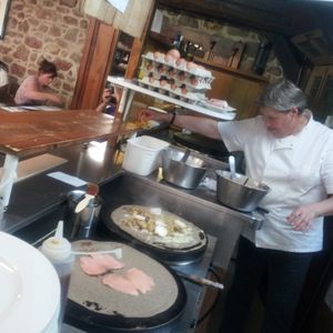 4つの店から選択でき、私たちは島内のレストランに行き、シードル、サラダorスープ、オムレツorムール貝、キャラメルクレープを食べました♪