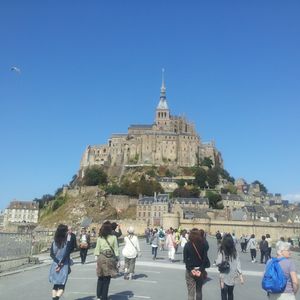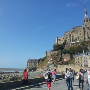 モンサンミッシェルは遠目で見た感じが、今までのガイドブックでみた景色と一緒でとても感動しました。ただ、行った時期が悪かったかもです。5/1、5/2はメーデとその次の日はストの日で修道院は休みとの連絡があり、私たちのいった4/30はほんとうに大混雑の日でした。