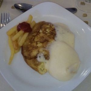 ツアーの案内通りのメニューで、サラダ・山盛りポテトとアップルパイは美味でした。オムレツは見た目で感動!味は…普通に焼いてもらいたな、という代物。寒い中修道院に到着した修道士は感動したと思いますが、現代人にはちょっと…。