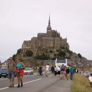 モンサンミッシェルに行く途中に立ち寄った小さな美しい村は30分の滞在ながら歩き回り、写真、思い出の土産も購入して楽しみました。肝心のモンサンミッシェルは手前からの全体の景色を見る時間は写真撮影の5分間しかなく、じっくりと観ることもできず、本当にがっかりしました。中に入ると3時間の自由時間がありますが、名物のオムレツ含むコース料理、建物の中の見学、土産物店巡りであっという間に時間が経ち、雨も降ってきたので外に出て全体の景色が観られる場所に戻ることは不可能でした。パリからの長い道程、トイレ休憩ではトイレが長蛇列で予想外のことに時間がかかったようです。一人参加なので割高となる一泊コースを避けましたが、二人参加ならゆっくりできるコースを選ぶと思います。フランスに二十年以上いるガイドは丁寧な説明でよかったです。