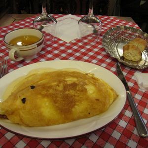オムレツは、混雑する一番有名なお店をさけ、坂の半ばあたりにあるレストランで頂きました。