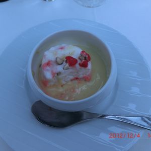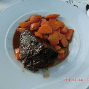 3コースあるのですが、真ん中のコースで十分でした。窓側の席は見晴らしもよく、コースのお料理もとても美味しかったです。ワインを2本あけ、すっかり気分良く過ごすことができました。日本人は私たちだけでしたが、日本語メニューもありますので、フランス語、英語がはなせなくても大丈夫です。