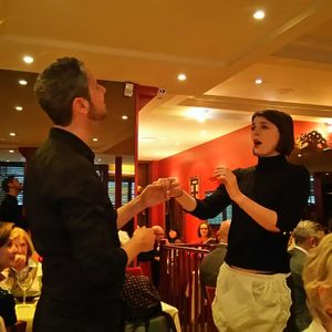 業務出張のパリ、夜のフリーの時間に楽しみました。レストランは駅から少し離れていますが日中その近辺を歩き回っていたので、タクシーではなく地下鉄利用で行けました。混み合っていて予想以上にテーブルとテーブルの間隔が狭かったので、苦手な方は息が詰まるかもしれません。私は隣のテーブルの方ともお話を楽しめましたし、最後に皆で歌うときには盛り上がれたと思います。オペラ好きにはたまりません。次回も利用しようと思います。