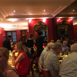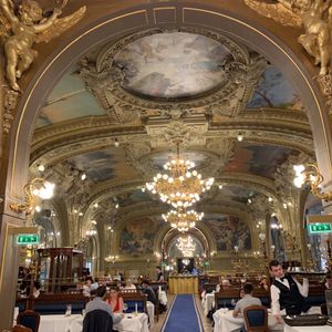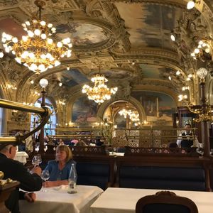 お店は大通りに面していて分かりやすく地下鉄駅から数分で到着、1階か2階か聞かれ空いていたので1階のテーブル席に。何を食べようかメニューで悩んでいた時、たまたま右隣テーブルのサンフランシスコから来た老夫婦と会話、4度目のパリでこのお店のフォアグラと魚がおいしいと言われ注文、食事中のスタッフのオベラも生歌で良かったですが最後のデザートのチョコレートボールはボリューム満点❗気付けば1階はほぼ満席、左隣は地元?のファミリー、日本人は見かけませんでした。