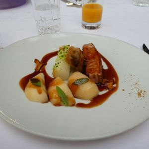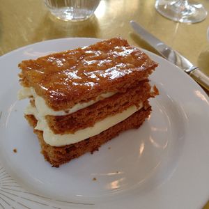 午前中にベルサイユ宮殿、午後からトリアノンの観光ツアーに参加しており、8/15で観光客が多いのは覚悟していましたが、店内は落ち着いておりゆっくりと食事をしながら休憩時間を過ごせました。午後のツアーの集合場所も目の前でしたし、建物の3階にあるトイレは穴場で待ち時間なく利用できるきれいなトイレでした。あと、選べるデザートにミルフィーユがあったのが個人的に嬉しかったです。美味しくいただきました。