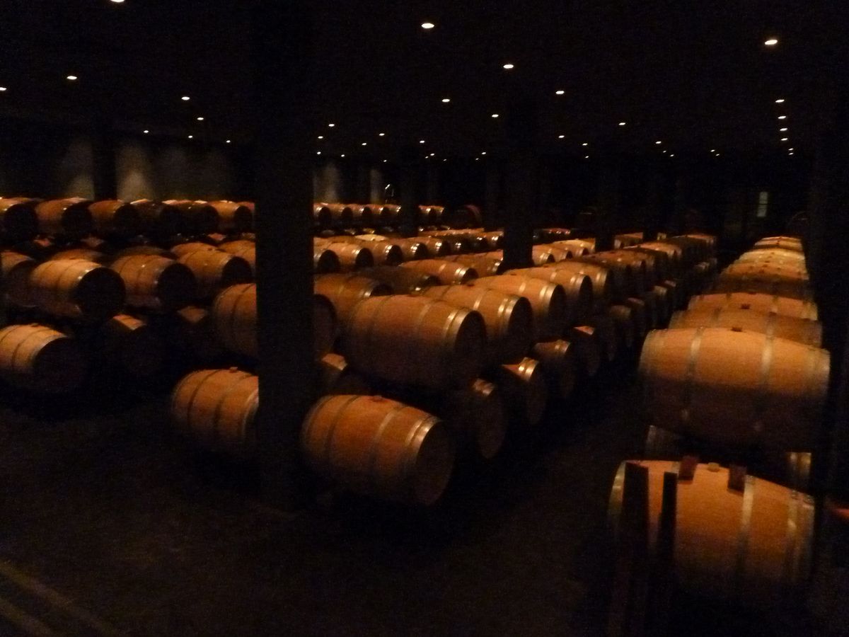 ワイナリーに到着後 ぶどう畑、ぶどう絞り器や樽での熟成状況を見学