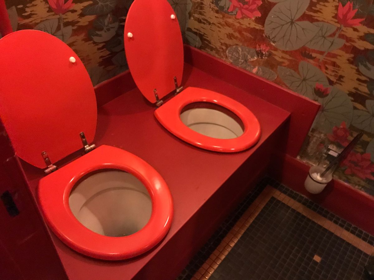 面白い女性トイレが1つあった。そこだけ2つの便器が並んでいるのだ。これはクレイジーホース特有のウィットなのかな?